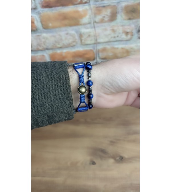 Doğal Taş Düğmeli Varasit&Kaplan Gözü Erkek Bileklik - B-3453-1