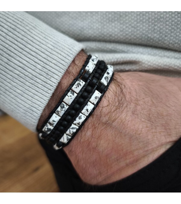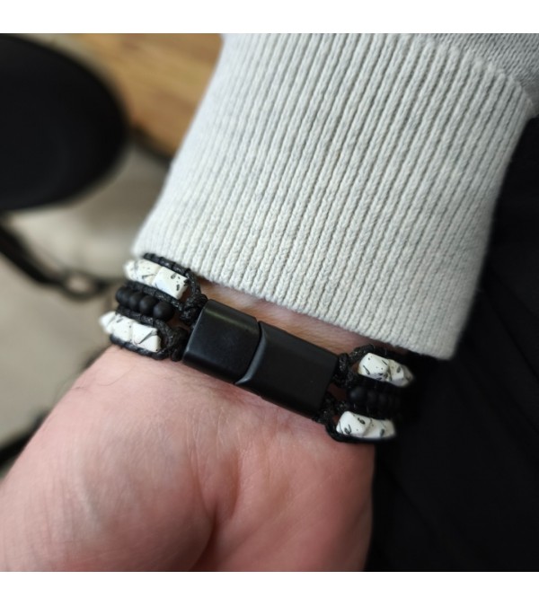 Doğal Hematit ve Oniks taşları ile hazırlanmış erkek bileklik modelimiz.