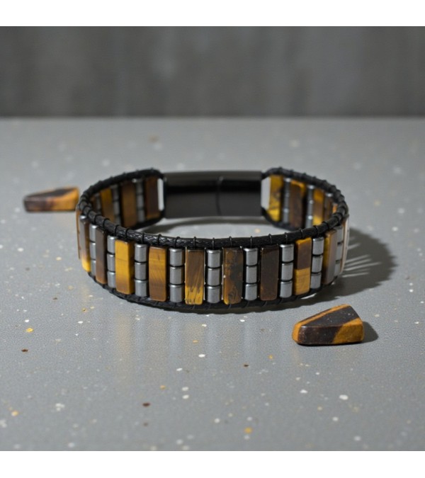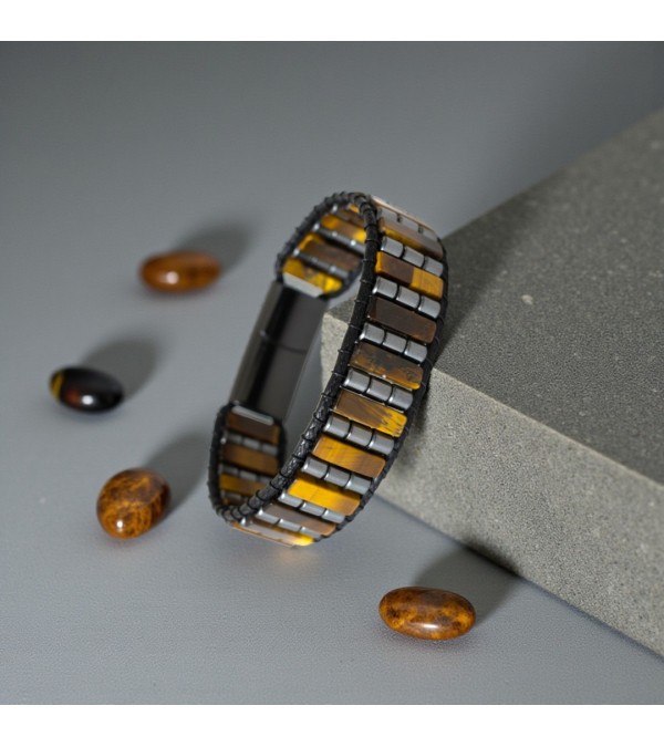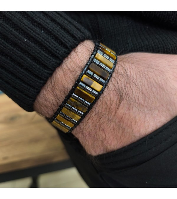 Doğal Taş Kaplan Gözü&Hamatit Erkek Bileklik - B-3434-1