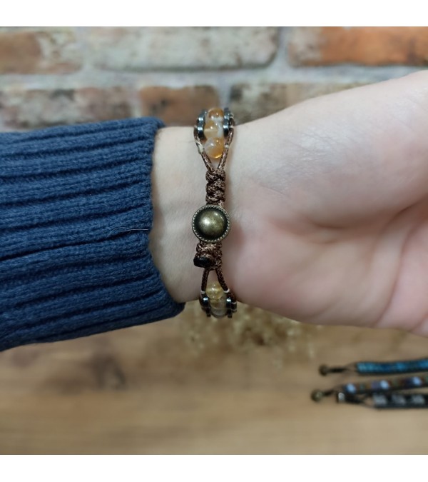 Doğal Taş Sitrin &Hematit Erkek Bileklik - B-3480-1