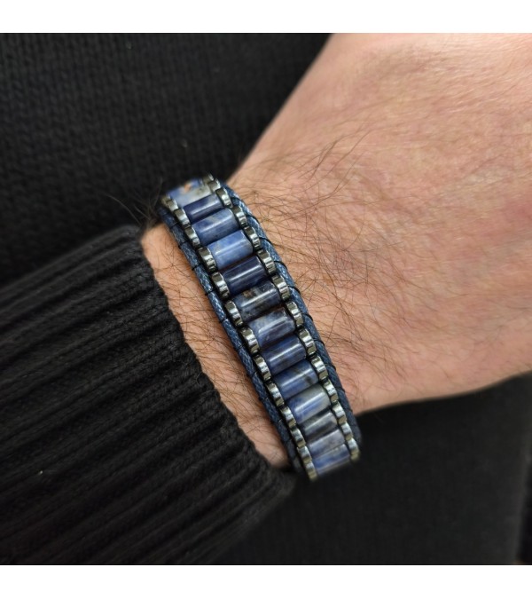 Sodalit ve Hematit taşları ile hazırlanmış erkek bileklik modelimiz.