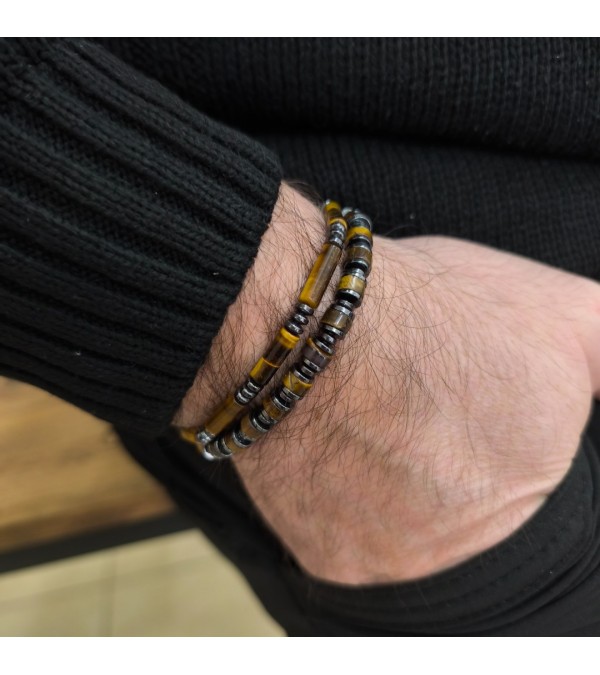 Doğal Taş Kaplan Gözü - Hematit Bileklik- B-3576-1