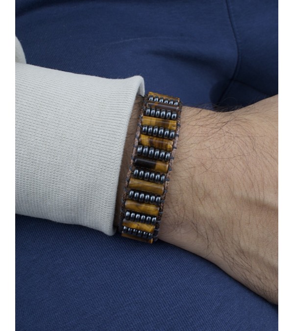 Doğal Taş Kaplan Gözü&Hematit Erkek Bileklik - B-3418-1