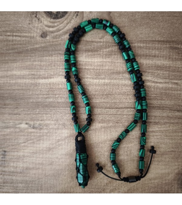 ????Malakit, Oniks ve Hematit Taşlı Erkek Kolye